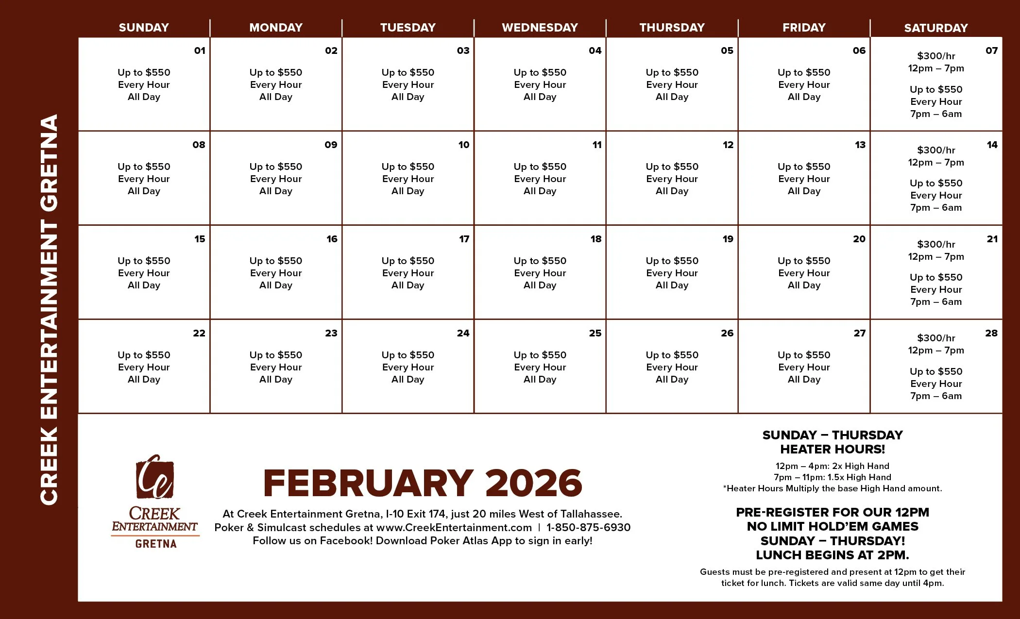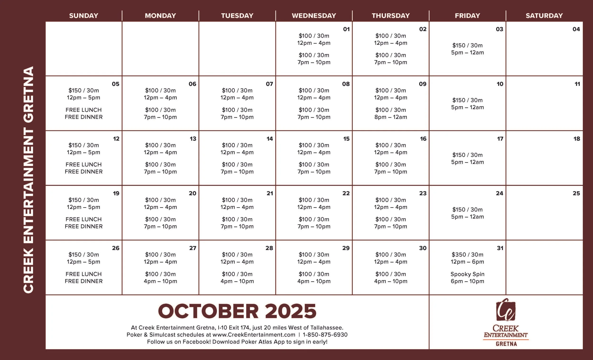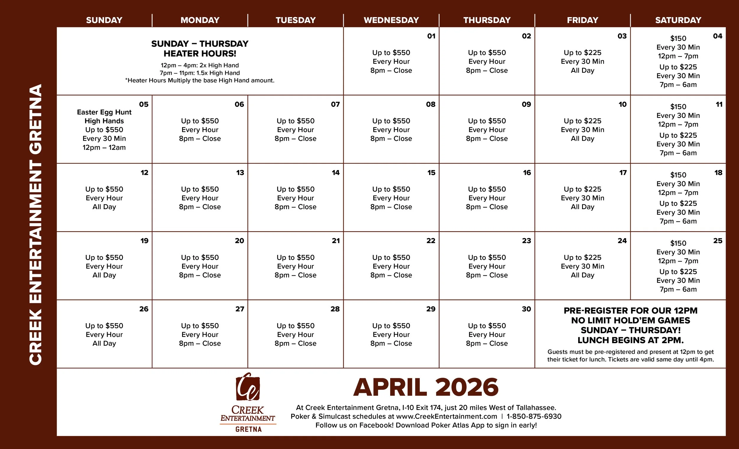 You’ll find all the games you love at Gretna’s Poker Room. With games starting at 9am daily coupled with promotions running all month long, there’s always something to add a little extra excitement to your game.
